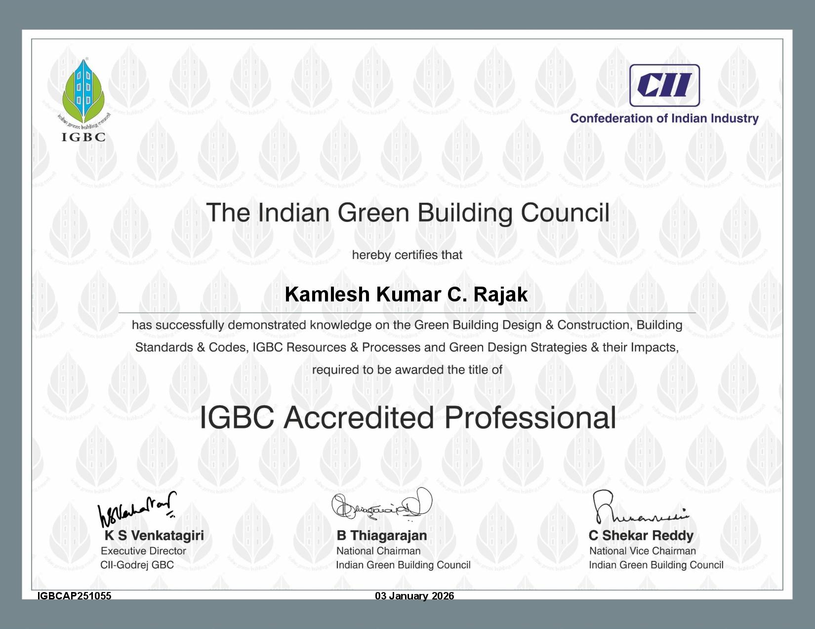 Mr. Kamlesh Kumar Rajak, Director of Eco MEP Private Limited, is an IGBC Accredited Professional (IGBC AP) with strong expertise in sustainable and green building design. He has extensive experience in delivering energy-efficient and environmentally responsible MEP solutions. His professional approach ensures compliance with IGBC standards and best practices. Under his leadership, Eco MEP Private Limited focuses on innovation, sustainability, and long-term value for clients